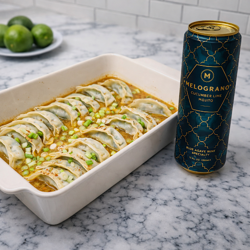 The cool, refreshing burst of cucumber and lime in this cocktail beautifully complements the savory umami of the dumplings. The minty Mojito twist adds a clean, crisp finish that cuts through the richness of the soy-ginger sauce, while the sparkling effervescence brightens every bite.